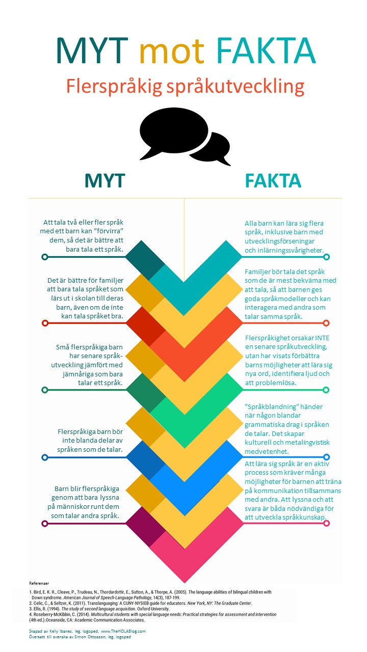 Se bilden MYT mot FAKTA ovan, skriven av logoped Kelly Ibanez och översatt till svenska av logoped Simon Ottosson.